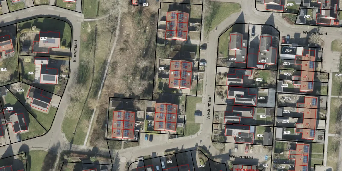 Het perceel waarop Westermaad 53 staat heeft een oppervlakte van 2400 m². Dit is een zeer groot perceel. De perceeloppervlakte wordt geregistreerd door het Kadaster. Gedetailleerde informatie over de maten van dit perceel kunt u vinden in het rapport Kadastrale kaart met maatvoering van Westermaad 53.