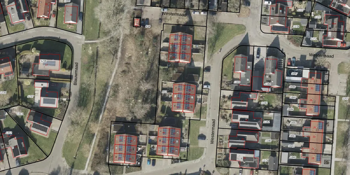 Het perceel waarop Westermaad 57 staat heeft een oppervlakte van 2400 m². Dit is een zeer groot perceel. De perceeloppervlakte wordt geregistreerd door het Kadaster. Gedetailleerde informatie over de maten van dit perceel kunt u vinden in het rapport Kadastrale kaart met maatvoering van Westermaad 57.