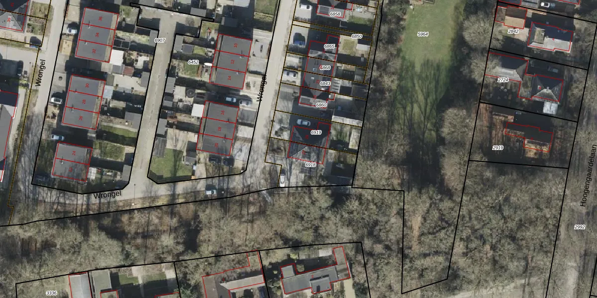 Gebruik de zoekbalk of klik op een perceel voor informatie over de adressen binnen dit perceel.