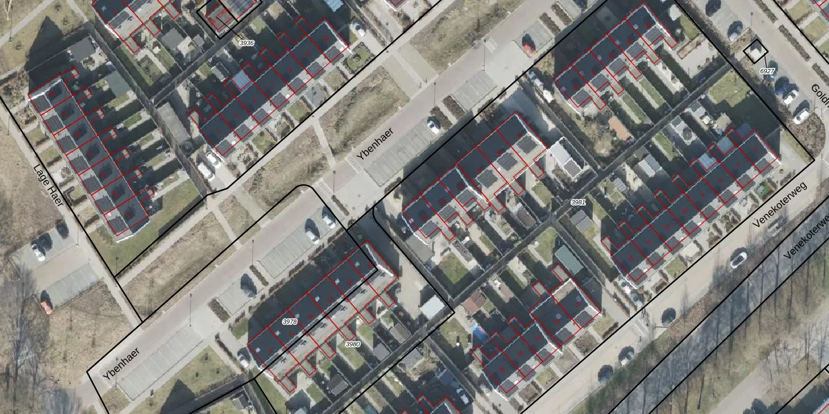 Het perceel waarop Ybenhaer 18 staat heeft een oppervlakte van 7110 m². Dit is een zeer groot perceel. De perceeloppervlakte wordt geregistreerd door het Kadaster. Gedetailleerde informatie over de maten van dit perceel kunt u vinden in het rapport Kadastrale kaart met maatvoering van Ybenhaer 18.