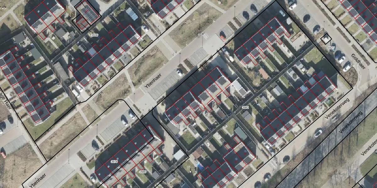Het perceel waarop Ybenhaer 22 staat heeft een oppervlakte van 7110 m². Dit is een zeer groot perceel. De perceeloppervlakte wordt geregistreerd door het Kadaster. Gedetailleerde informatie over de maten van dit perceel kunt u vinden in het rapport Kadastrale kaart met maatvoering van Ybenhaer 22.