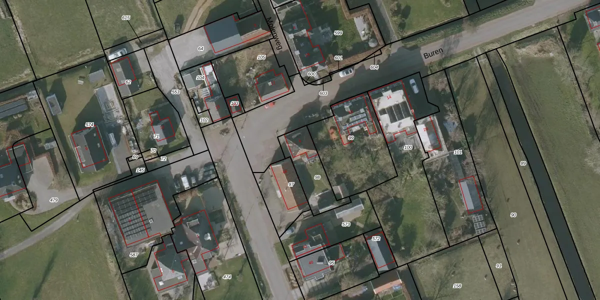 Het perceel waarop Buren 4 staat heeft een oppervlakte van 285 m². Dit is een middelgroot perceel. De perceeloppervlakte wordt geregistreerd door het Kadaster. Gedetailleerde informatie over de maten van dit perceel kunt u vinden in het rapport Kadastrale kaart met maatvoering van Buren 4.
