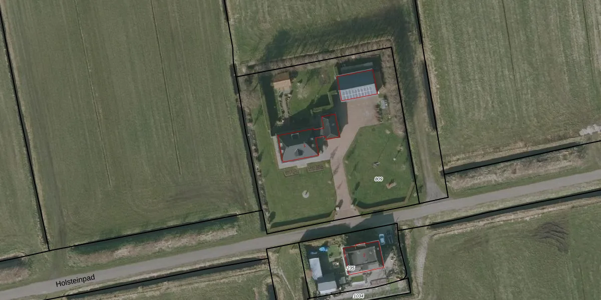 Holsteinpad 1 is gelegen op kadastraal perceel OTZ00L809. Deze kadastrale aanduiding is uniek en wordt gebruikt door het Kadaster om eigendomsrechten en andere zakelijke rechten vast te leggen. Het perceel maakt onderdeel uit van de kadastrale gemeente Oosterzee.