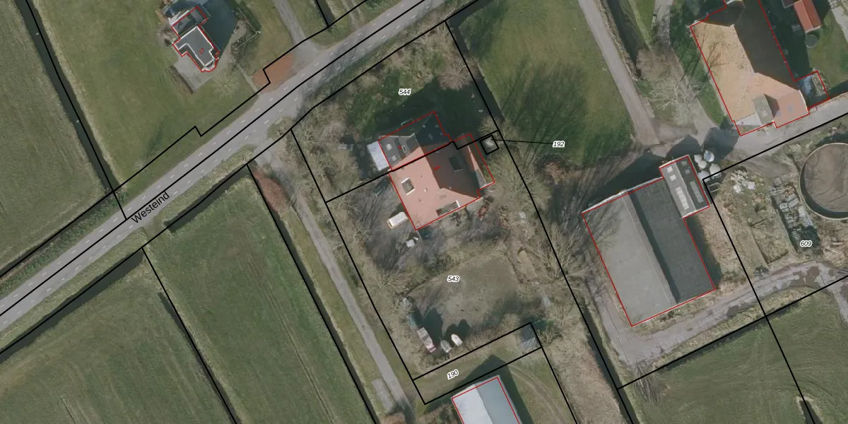 Het adres is gelegen op perceel 543 in de sectie K en de kadastrale gemeente Oosterzee. De kadastrale aanduiding is aldus OTZ00-K-543. Het perceel is kleiner dan gemiddeld in Oosterzee. Het perceel is 2580 m² groot, terwijl het gemiddelde ligt op 1,7 ha. De grootste perceeloppervlakte in de kadastrale gemeente is 6,33 km². De kleinste oppervlakte bedraagt 0 m². Dit is het enige adres dat aanwezig is op het perceel. De huidige grenzen van het perceel zijn digitaal in de Basisregistratie Kadaster (BRK) geregistreerd op 15-02-2023.