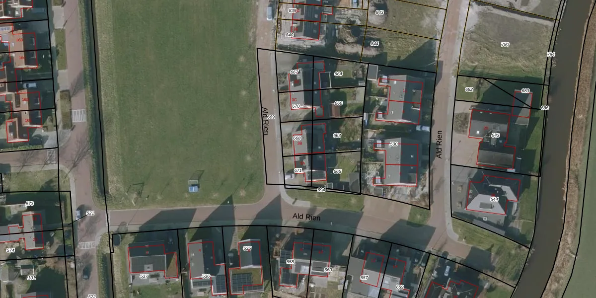 Ald Rien 3-B is gelegen op kadastraal perceel NLD01J668. Deze kadastrale aanduiding is uniek en wordt gebruikt door het Kadaster om eigendomsrechten en andere zakelijke rechten vast te leggen. Het perceel maakt onderdeel uit van de kadastrale gemeente Nieuwland Friesland.