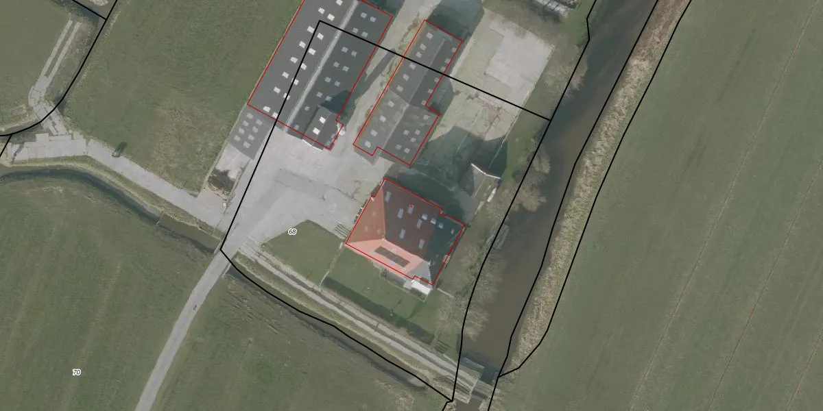 Het adres ligt op het perceel NLD01-J-68, dat zich in de kadastrale gemeente Nieuwland Friesland bevindt. Het perceel is kleiner dan gemiddeld in Nieuwland Friesland. Het perceel is 4115 m² groot, terwijl het gemiddelde ligt op 1,4 ha. Het kleinste perceel in de kadastrale gemeente is 0 m² groot. De grootste perceeloppervlakte is 42,1 ha. Dit is het enige adres dat aanwezig is op het perceel. In de Basisregistratie Kadaster (BRK) werden de grenzen van het perceel geregistreerd op 19-02-2010.