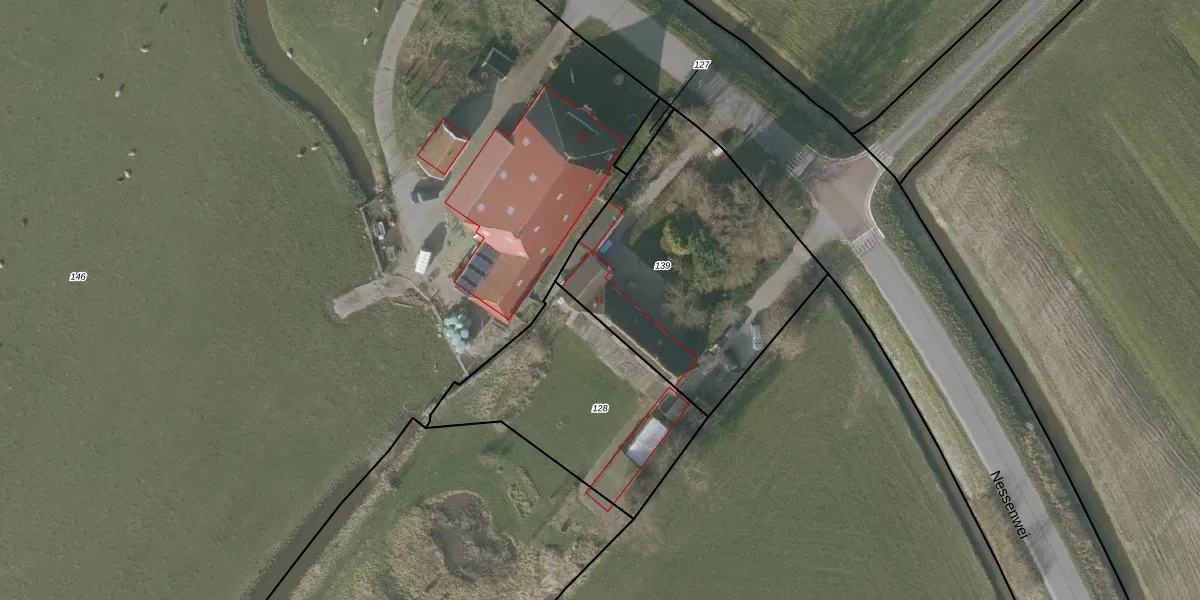 Nessenwei 12 is gelegen op kadastraal perceel NLD01J139. Deze kadastrale aanduiding is uniek en wordt gebruikt door het Kadaster om eigendomsrechten en andere zakelijke rechten vast te leggen. Het perceel maakt onderdeel uit van de kadastrale gemeente Nieuwland Friesland.