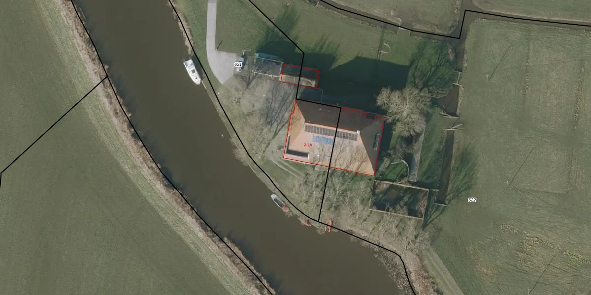 Het perceel waarop het adres ligt is NLD01-J-621. De afkorting 'NLD01' staat voor kadastrale gemeente Nieuwland Friesland. Het perceel is 2258 m² groot. Dat is kleiner dan de gemiddelde perceeloppervlakte in Nieuwland Friesland, dat op 1,4 ha ligt. De grootste perceeloppervlakte in de kadastrale gemeente is 42,1 ha. De kleinste oppervlakte bedraagt 0 m². Er zijn geen andere adressen aanwezig op het perceel. De huidige grenzen van het perceel zijn digitaal in de Basisregistratie Kadaster (BRK) geregistreerd op 25-07-2013.