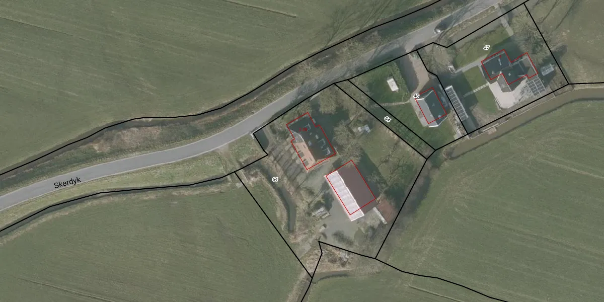 Het perceel waarop Skerdyk 2 staat heeft een oppervlakte van 2300 m². Dit is een zeer groot perceel. De perceeloppervlakte wordt geregistreerd door het Kadaster. Gedetailleerde informatie over de maten van dit perceel kunt u vinden in het rapport Kadastrale kaart met maatvoering van Skerdyk 2.