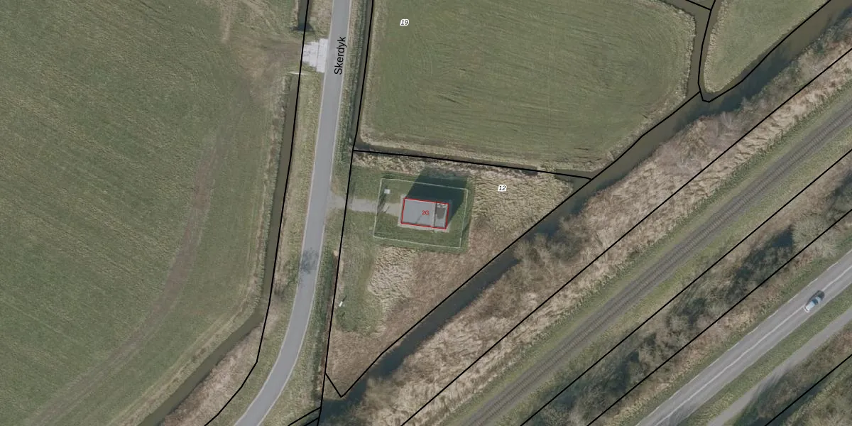 Het perceel waarop Skerdyk 2-G staat heeft een oppervlakte van 1710 m². Dit is een zeer groot perceel. De perceeloppervlakte wordt geregistreerd door het Kadaster. Gedetailleerde informatie over de maten van dit perceel kunt u vinden in het rapport Kadastrale kaart met maatvoering van Skerdyk 2-G.