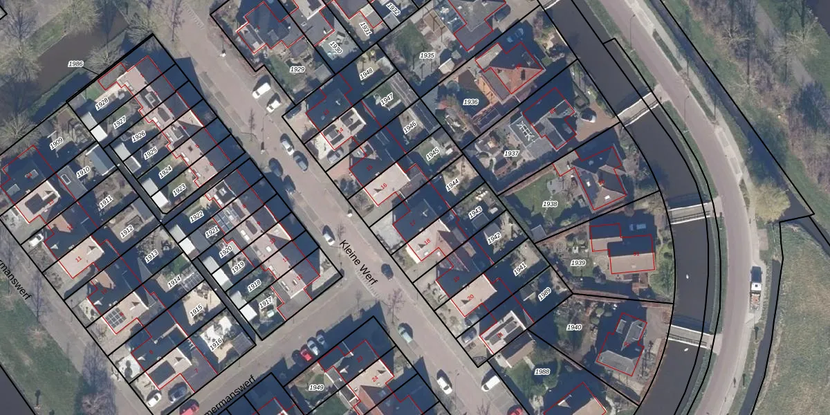 Het perceel waarop Kleine Werf 17 staat heeft een oppervlakte van 245 m². Dit is een middelgroot perceel. De perceeloppervlakte wordt geregistreerd door het Kadaster. Gedetailleerde informatie over de maten van dit perceel kunt u vinden in het rapport Kadastrale kaart met maatvoering van Kleine Werf 17.