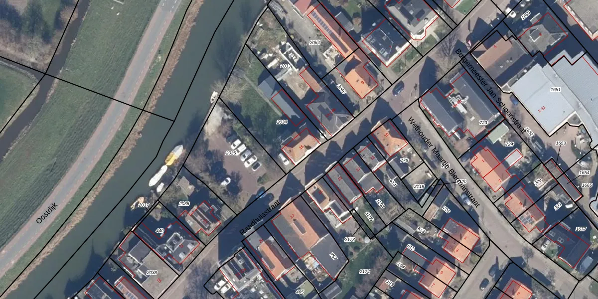 Het perceel waarop Raadhuisstraat 15 staat heeft een oppervlakte van 695 m². Dit is een groot perceel. De perceeloppervlakte wordt geregistreerd door het Kadaster. Gedetailleerde informatie over de maten van dit perceel kunt u vinden in het rapport Kadastrale kaart met maatvoering van Raadhuisstraat 15.