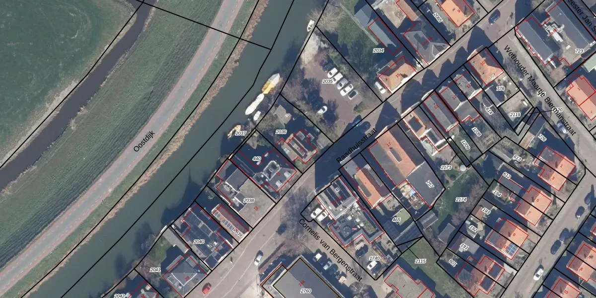 Raadhuisstraat 21 is gelegen op kadastraal perceel OHZ00E2036. Deze kadastrale aanduiding is uniek en wordt gebruikt door het Kadaster om eigendomsrechten en andere zakelijke rechten vast te leggen. Het perceel maakt onderdeel uit van de kadastrale gemeente Oosthuizen.