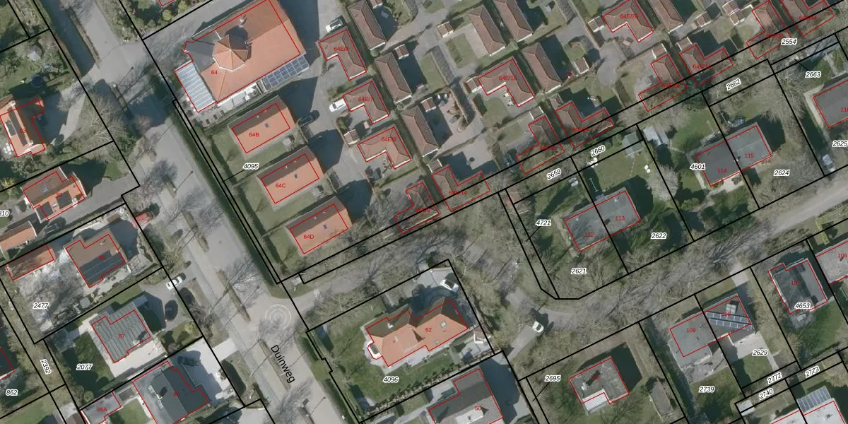 Duinweg 64-E-5 is gelegen op kadastraal perceel DBG03K2554. Deze kadastrale aanduiding is uniek en wordt gebruikt door het Kadaster om eigendomsrechten en andere zakelijke rechten vast te leggen. Het perceel maakt onderdeel uit van de kadastrale gemeente Domburg.