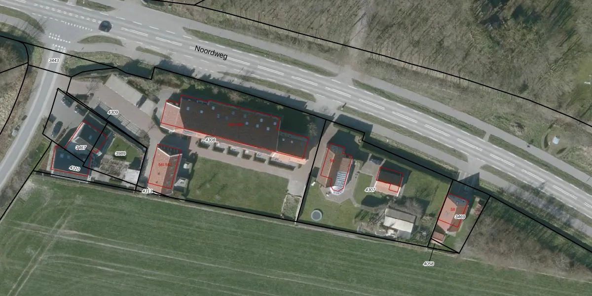 Noordweg 56-A is gelegen op kadastraal perceel DBG03K4308. Deze kadastrale aanduiding is uniek en wordt gebruikt door het Kadaster om eigendomsrechten en andere zakelijke rechten vast te leggen. Het perceel maakt onderdeel uit van de kadastrale gemeente Domburg.