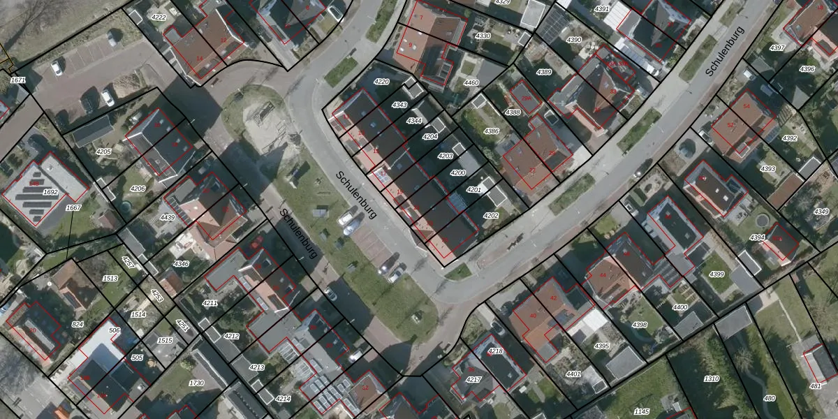 Schulenburg 21 is gelegen op kadastraal perceel DBG03K4200. Deze kadastrale aanduiding is uniek en wordt gebruikt door het Kadaster om eigendomsrechten en andere zakelijke rechten vast te leggen. Het perceel maakt onderdeel uit van de kadastrale gemeente Domburg.
