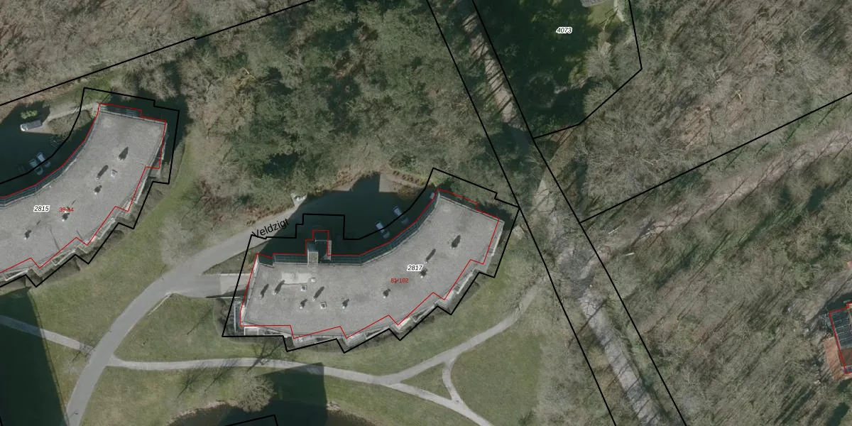 Veldzigt 100 is gelegen op kadastraal perceel DBG03K2817. Deze kadastrale aanduiding is uniek en wordt gebruikt door het Kadaster om eigendomsrechten en andere zakelijke rechten vast te leggen. Het perceel maakt onderdeel uit van de kadastrale gemeente Domburg.