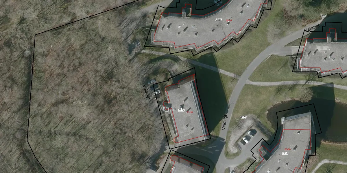 Het perceel waarop Veldzigt 29 staat heeft een oppervlakte van 977 m². Dit is een groot perceel. De perceeloppervlakte wordt geregistreerd door het Kadaster. Gedetailleerde informatie over de maten van dit perceel kunt u vinden in het rapport Kadastrale kaart met maatvoering van Veldzigt 29.