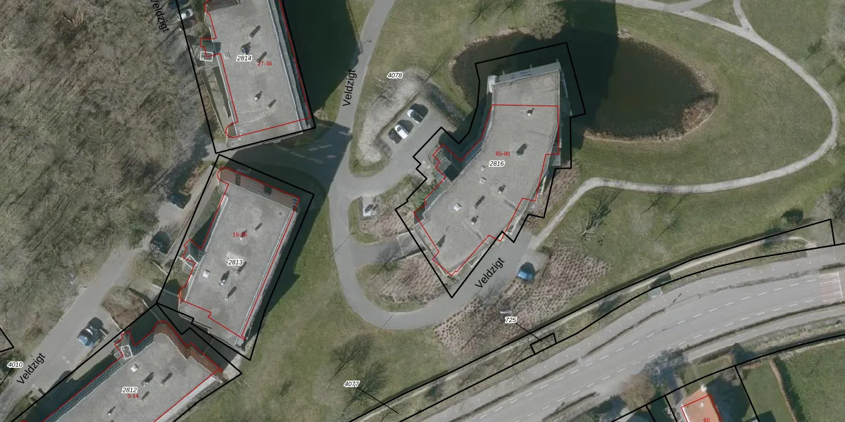 Het perceel waarop Veldzigt 80 staat heeft een oppervlakte van 1390 m². Dit is een zeer groot perceel. De perceeloppervlakte wordt geregistreerd door het Kadaster. Gedetailleerde informatie over de maten van dit perceel kunt u vinden in het rapport Kadastrale kaart met maatvoering van Veldzigt 80.