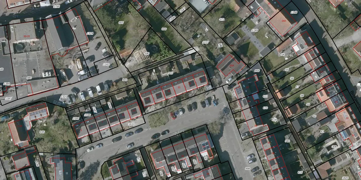 Het adres ligt op het perceel DBG03-H-955, dat zich in de kadastrale gemeente Domburg bevindt. Het perceel is kleiner dan gemiddeld in Domburg. Het perceel is 875 m² groot, terwijl het gemiddelde ligt op 5787,49 m². De grootste perceeloppervlakte in de kadastrale gemeente is 6,05 km². De kleinste oppervlakte bedraagt 0 m². Er zijn 6 adressen aanwezig op het perceel. De laatste wijziging in het de Basisregistratie Kadaster (BRK) was op 05-06-2001.