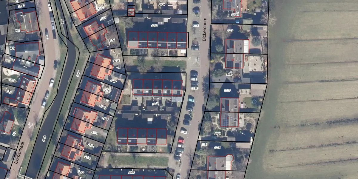 Het perceel waarop Bickershorn 23 staat heeft een oppervlakte van 1559 m². Dit is een zeer groot perceel. De perceeloppervlakte wordt geregistreerd door het Kadaster. Gedetailleerde informatie over de maten van dit perceel kunt u vinden in het rapport Kadastrale kaart met maatvoering van Bickershorn 23.