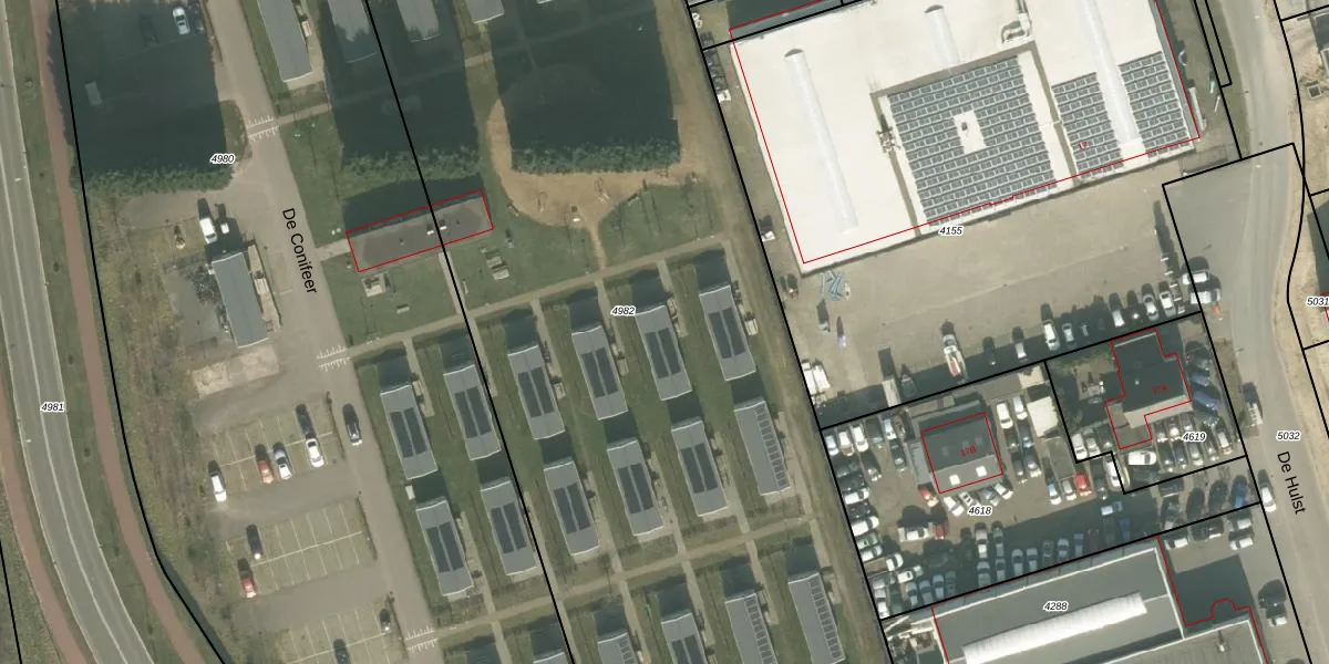 Het perceel waarop De Conifeer 36 staat heeft een oppervlakte van 1,6 ha. Dit is een zeer groot perceel. De perceeloppervlakte wordt geregistreerd door het Kadaster. Gedetailleerde informatie over de maten van dit perceel kunt u vinden in het rapport Kadastrale kaart met maatvoering van De Conifeer 36.