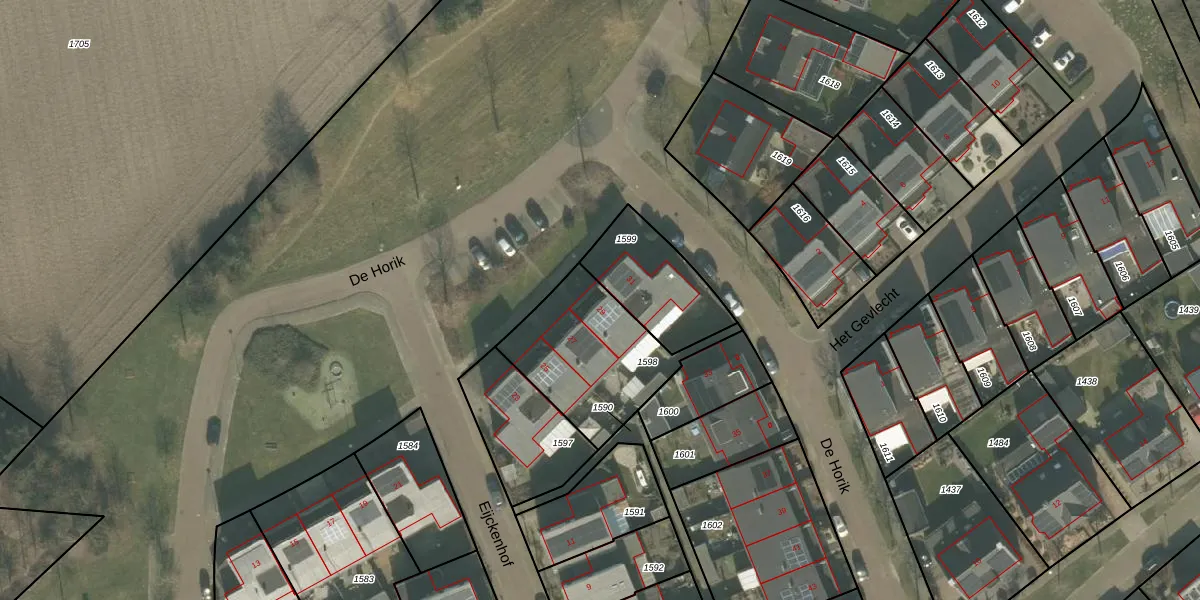 Het perceel waarop De Horik 29 staat heeft een oppervlakte van 490 m². Dit is een groot perceel. De perceeloppervlakte wordt geregistreerd door het Kadaster. Gedetailleerde informatie over de maten van dit perceel kunt u vinden in het rapport Kadastrale kaart met maatvoering van De Horik 29.