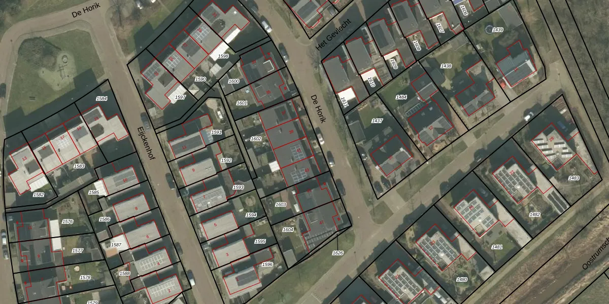 Het perceel waarop De Horik 41 staat heeft een oppervlakte van 625 m². Dit is een groot perceel. De perceeloppervlakte wordt geregistreerd door het Kadaster. Gedetailleerde informatie over de maten van dit perceel kunt u vinden in het rapport Kadastrale kaart met maatvoering van De Horik 41.
