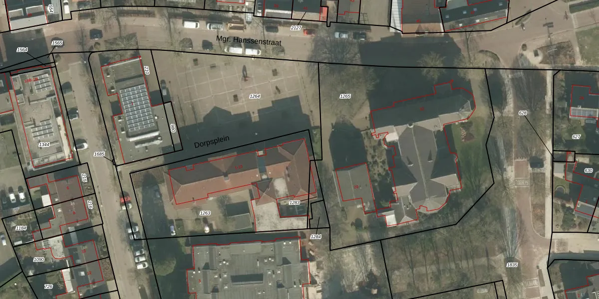 Dorpsplein 1 is gelegen op kadastraal perceel VRY00S1263. Deze kadastrale aanduiding is uniek en wordt gebruikt door het Kadaster om eigendomsrechten en andere zakelijke rechten vast te leggen. Het perceel maakt onderdeel uit van de kadastrale gemeente Venray.