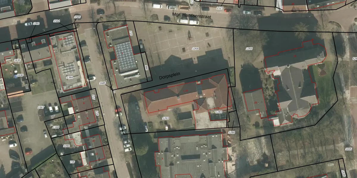 Het perceel waarop Dorpsplein 10 staat heeft een oppervlakte van 1580 m². Dit is een zeer groot perceel. De perceeloppervlakte wordt geregistreerd door het Kadaster. Gedetailleerde informatie over de maten van dit perceel kunt u vinden in het rapport Kadastrale kaart met maatvoering van Dorpsplein 10.