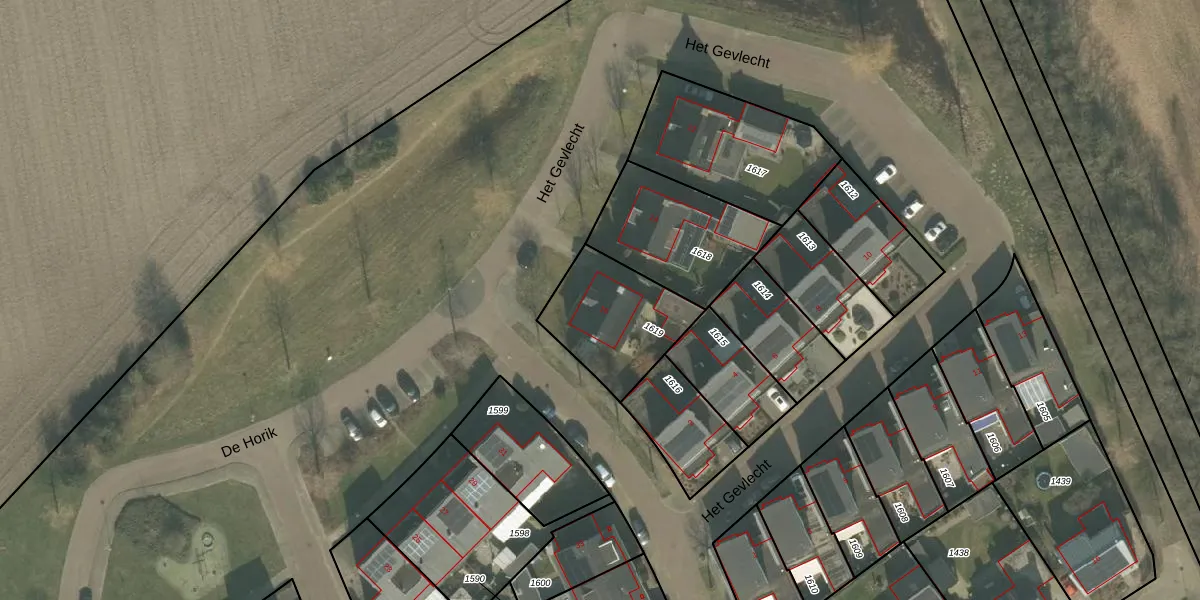 Gebruik de zoekbalk of klik op een perceel voor informatie over de adressen binnen dit perceel.