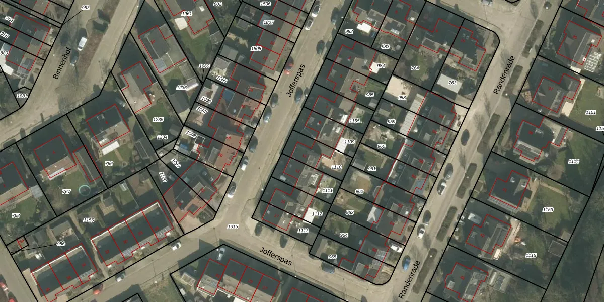 Het perceel waarop Jofferspas 11 staat heeft een oppervlakte van 188 m². Dit is een middelgroot perceel. De perceeloppervlakte wordt geregistreerd door het Kadaster. Gedetailleerde informatie over de maten van dit perceel kunt u vinden in het rapport Kadastrale kaart met maatvoering van Jofferspas 11.