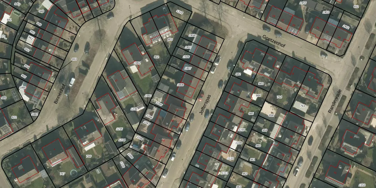 Het perceel waarop Jofferspas 12 staat heeft een oppervlakte van 305 m². Dit is een groot perceel. De perceeloppervlakte wordt geregistreerd door het Kadaster. Gedetailleerde informatie over de maten van dit perceel kunt u vinden in het rapport Kadastrale kaart met maatvoering van Jofferspas 12.