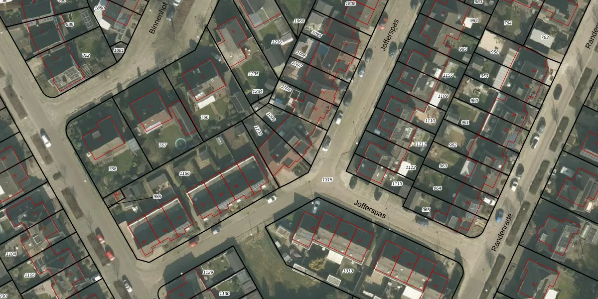 Het perceel waarop Jofferspas 22 staat heeft een oppervlakte van 210 m². Dit is een middelgroot perceel. De perceeloppervlakte wordt geregistreerd door het Kadaster. Gedetailleerde informatie over de maten van dit perceel kunt u vinden in het rapport Kadastrale kaart met maatvoering van Jofferspas 22.