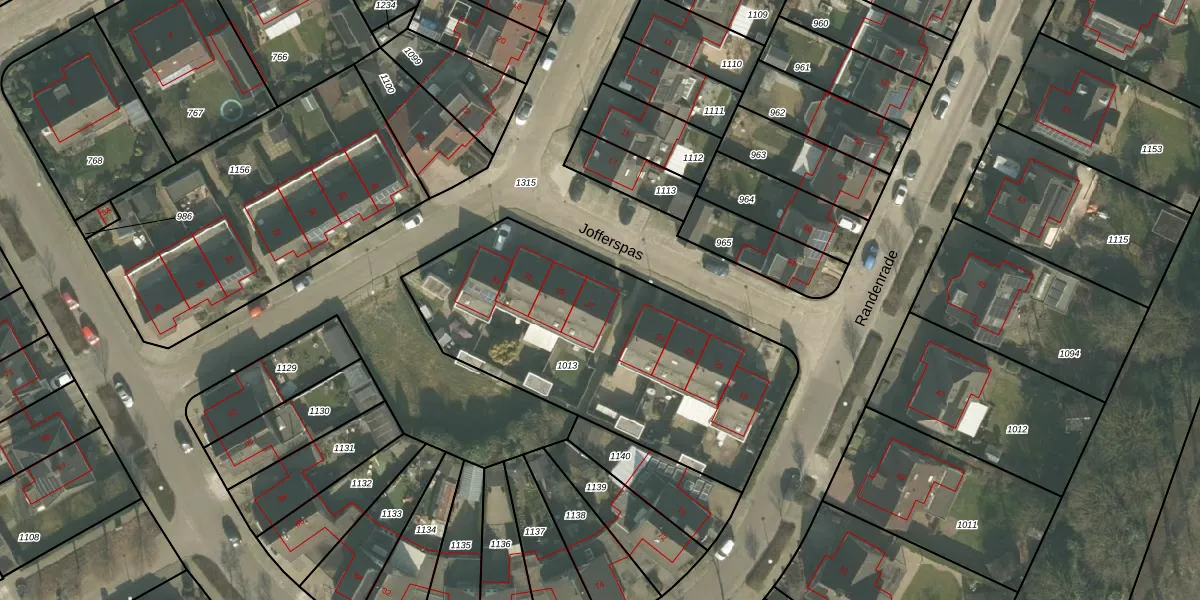 Het perceel waarop Jofferspas 27 staat heeft een oppervlakte van 1513 m². Dit is een zeer groot perceel. De perceeloppervlakte wordt geregistreerd door het Kadaster. Gedetailleerde informatie over de maten van dit perceel kunt u vinden in het rapport Kadastrale kaart met maatvoering van Jofferspas 27.