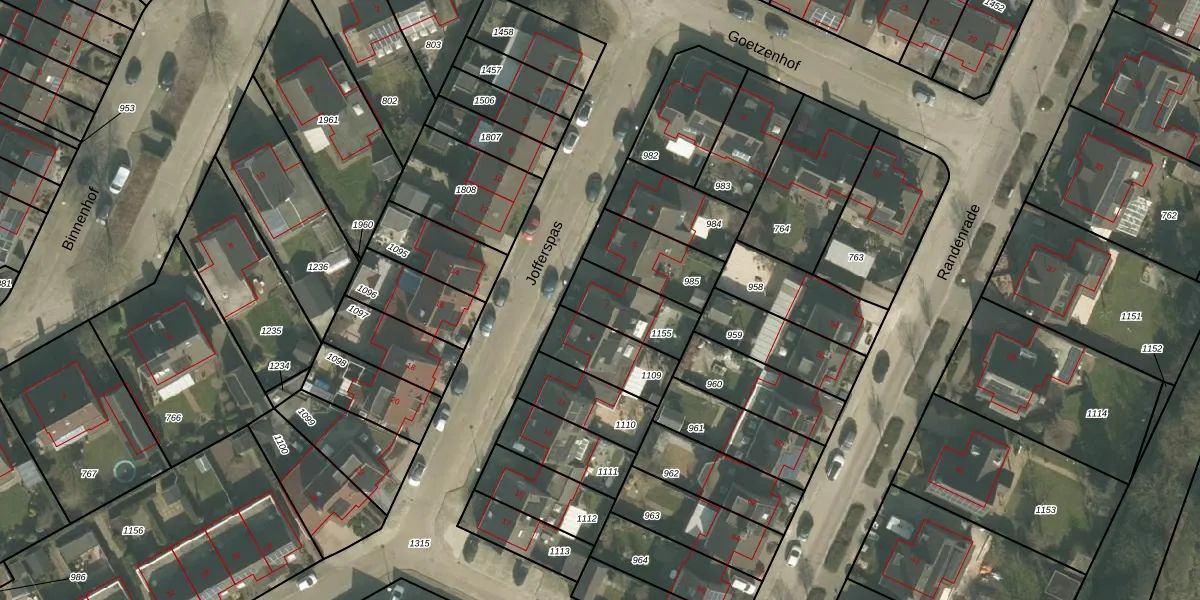 Het perceel waarop Jofferspas 7 staat heeft een oppervlakte van 189 m². Dit is een middelgroot perceel. De perceeloppervlakte wordt geregistreerd door het Kadaster. Gedetailleerde informatie over de maten van dit perceel kunt u vinden in het rapport Kadastrale kaart met maatvoering van Jofferspas 7.