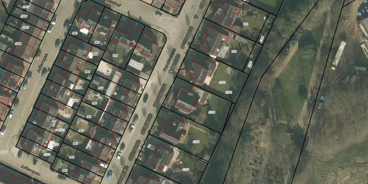 Het perceel waarop Randenrade 39 staat heeft een oppervlakte van 625 m². Dit is een groot perceel. De perceeloppervlakte wordt geregistreerd door het Kadaster. Gedetailleerde informatie over de maten van dit perceel kunt u vinden in het rapport Kadastrale kaart met maatvoering van Randenrade 39.