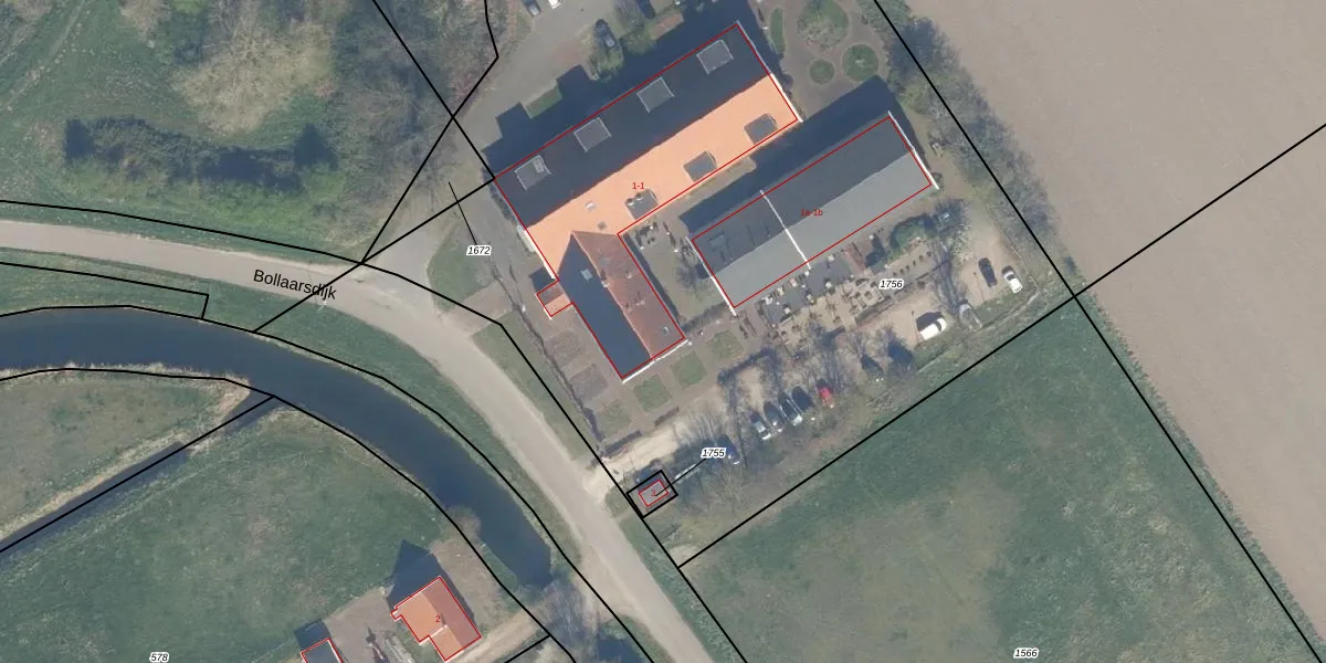 Het perceel waarop Bollaarsdijk 1-k02 staat heeft een oppervlakte van 6638 m². Dit is een zeer groot perceel. De perceeloppervlakte wordt geregistreerd door het Kadaster. Gedetailleerde informatie over de maten van dit perceel kunt u vinden in het rapport Kadastrale kaart met maatvoering van Bollaarsdijk 1-k02.