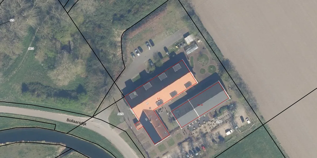Het perceel waarop Bollaarsdijk 1-k07 staat heeft een oppervlakte van 6638 m². Dit is een zeer groot perceel. De perceeloppervlakte wordt geregistreerd door het Kadaster. Gedetailleerde informatie over de maten van dit perceel kunt u vinden in het rapport Kadastrale kaart met maatvoering van Bollaarsdijk 1-k07.