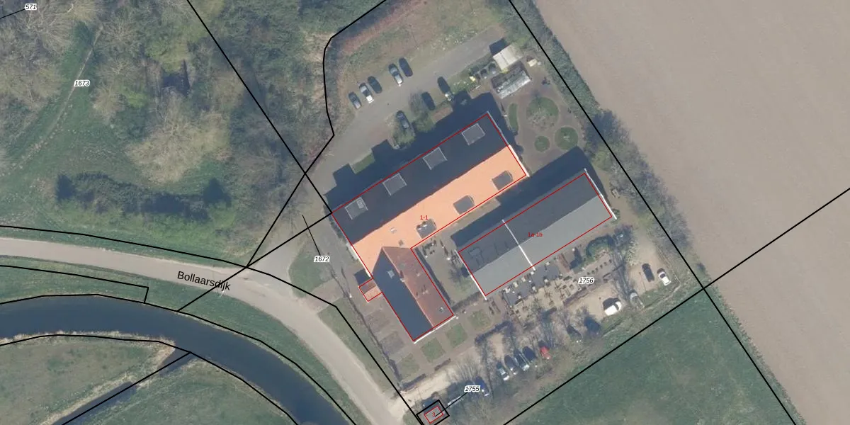 Het perceel waarop Bollaarsdijk 1-k25 staat heeft een oppervlakte van 6638 m². Dit is een zeer groot perceel. De perceeloppervlakte wordt geregistreerd door het Kadaster. Gedetailleerde informatie over de maten van dit perceel kunt u vinden in het rapport Kadastrale kaart met maatvoering van Bollaarsdijk 1-k25.