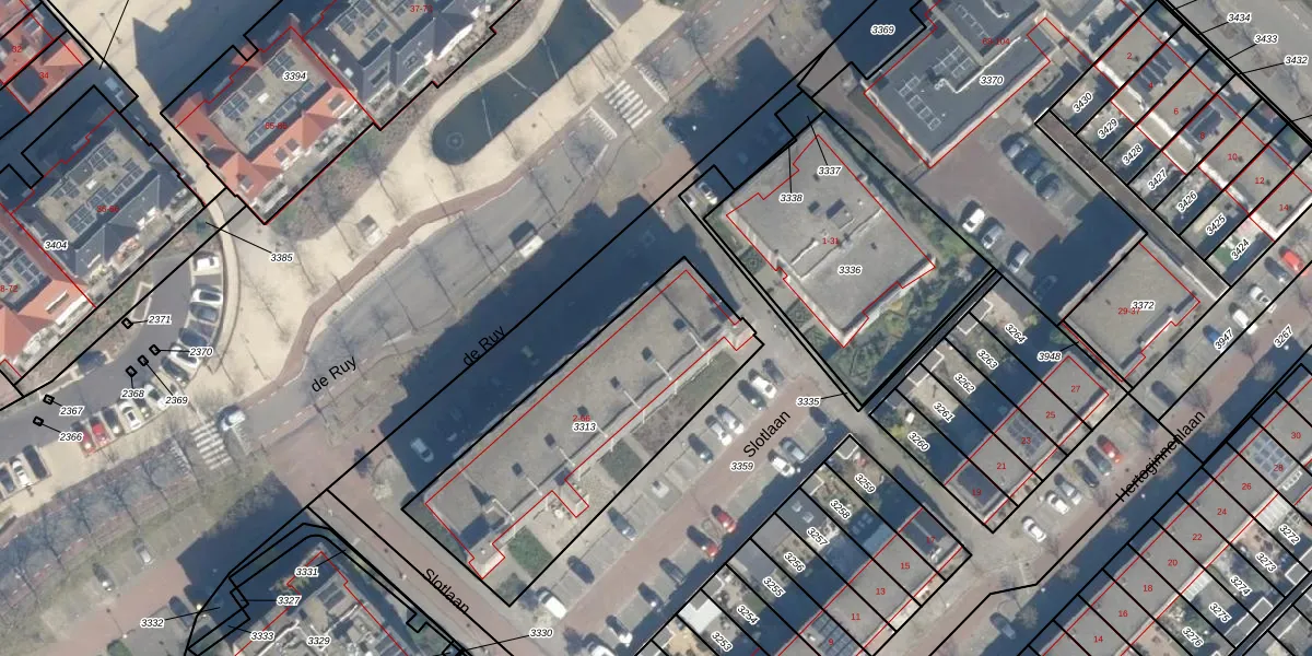 Het perceel waarop de Ruy 20 staat heeft een oppervlakte van 1135 m². Dit is een zeer groot perceel. De perceeloppervlakte wordt geregistreerd door het Kadaster. Gedetailleerde informatie over de maten van dit perceel kunt u vinden in het rapport Kadastrale kaart met maatvoering van de Ruy 20.