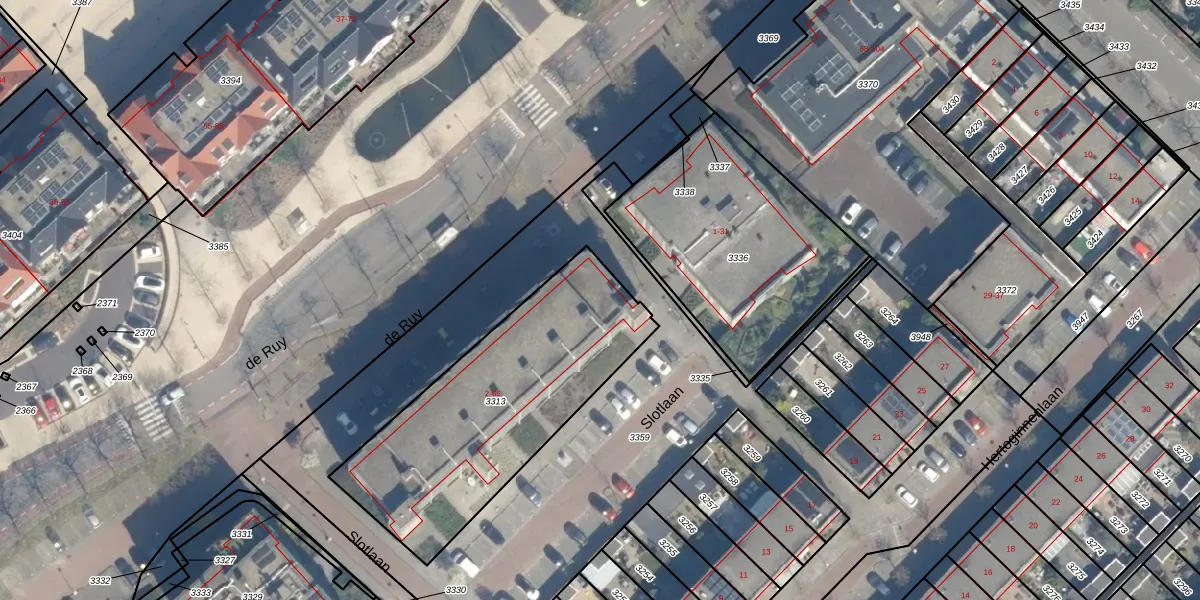 Het perceel waarop de Ruy 38 staat heeft een oppervlakte van 1135 m². Dit is een zeer groot perceel. De perceeloppervlakte wordt geregistreerd door het Kadaster. Gedetailleerde informatie over de maten van dit perceel kunt u vinden in het rapport Kadastrale kaart met maatvoering van de Ruy 38.