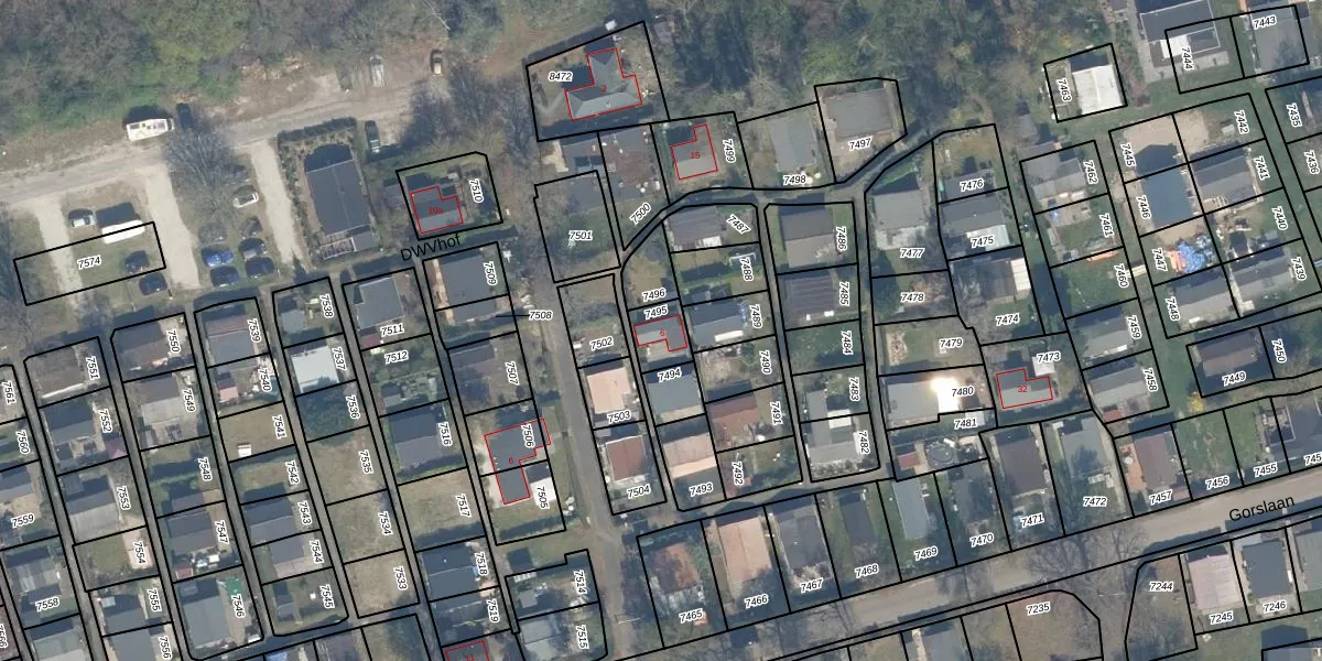 Gebruik de zoekbalk of klik op een perceel voor informatie over de adressen binnen dit perceel.