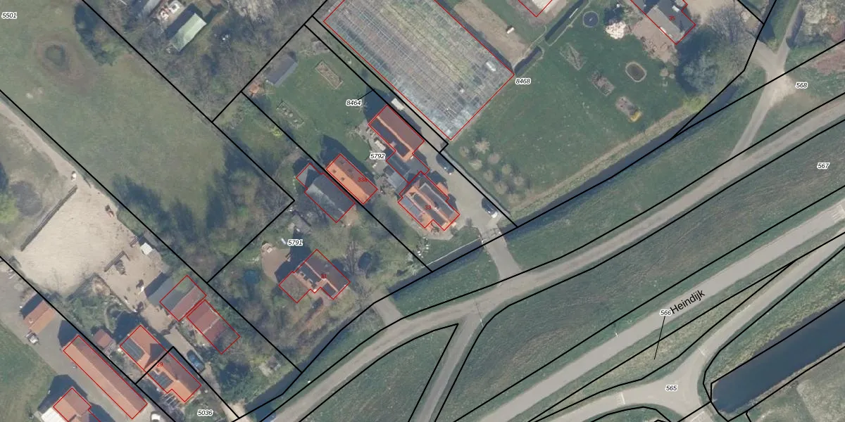 Het perceel waarop Heindijk 33 staat heeft een oppervlakte van 1435 m². Dit is een zeer groot perceel. De perceeloppervlakte wordt geregistreerd door het Kadaster. Gedetailleerde informatie over de maten van dit perceel kunt u vinden in het rapport Kadastrale kaart met maatvoering van Heindijk 33.