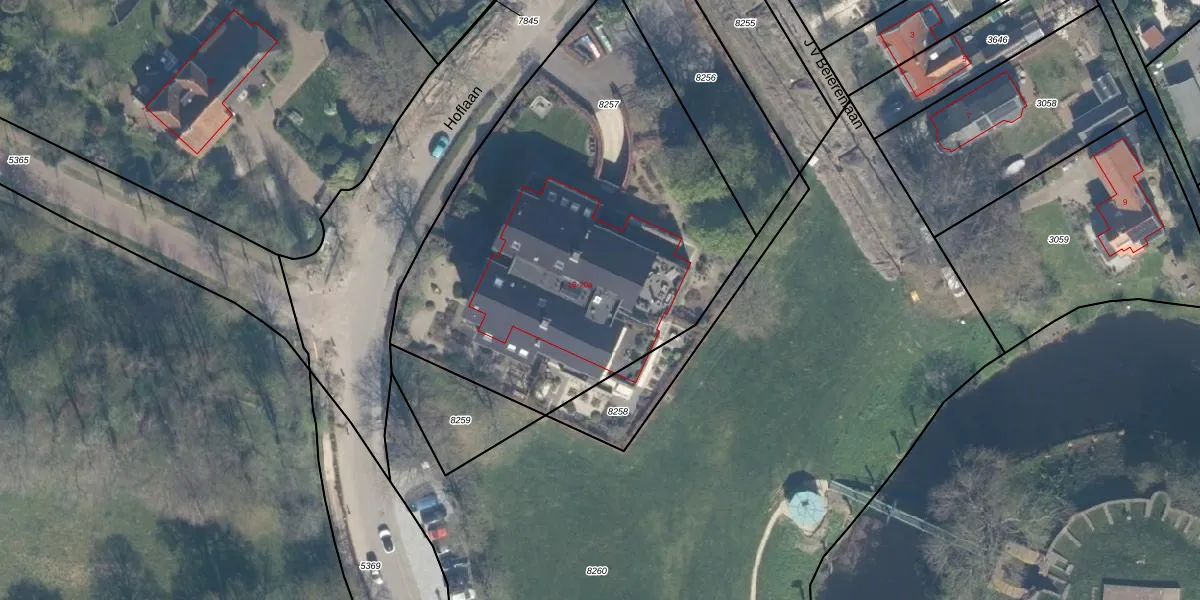 Het perceel waarop Hoflaan 20-a staat heeft een oppervlakte van 2410 m². Dit is een zeer groot perceel. De perceeloppervlakte wordt geregistreerd door het Kadaster. Gedetailleerde informatie over de maten van dit perceel kunt u vinden in het rapport Kadastrale kaart met maatvoering van Hoflaan 20-a.