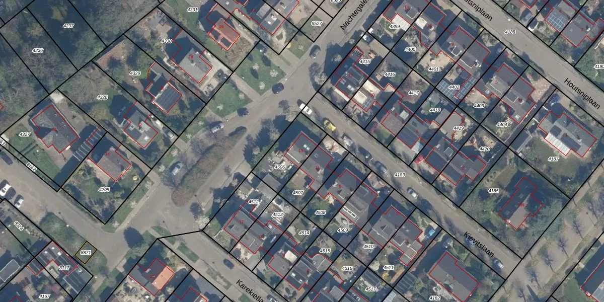 Gebruik de zoekbalk of klik op een perceel voor informatie over de adressen binnen dit perceel.