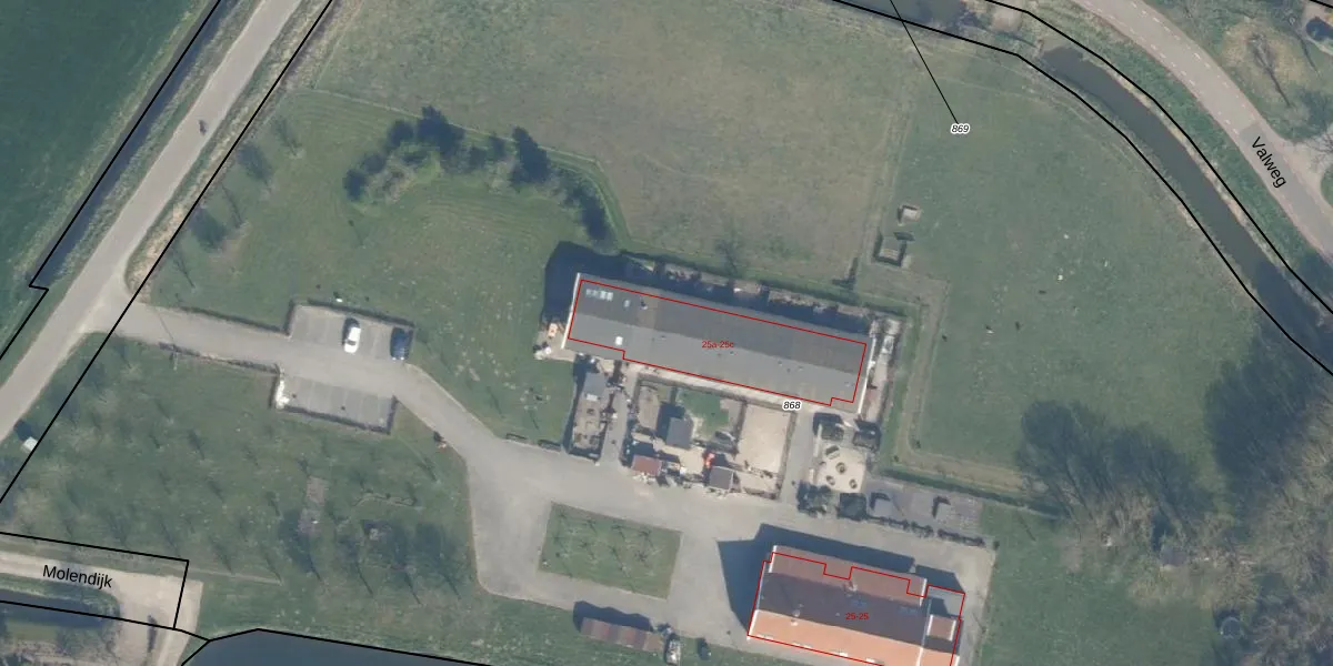 Het perceel waarop Molendijk 25-a-k01 staat heeft een oppervlakte van 1,9 ha. Dit is een zeer groot perceel. De perceeloppervlakte wordt geregistreerd door het Kadaster. Gedetailleerde informatie over de maten van dit perceel kunt u vinden in het rapport Kadastrale kaart met maatvoering van Molendijk 25-a-k01.