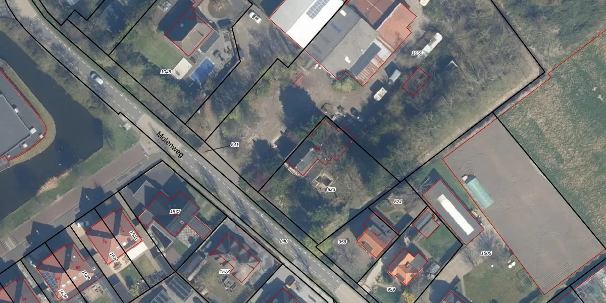 Het perceel waarop Molenweg 49 staat heeft een oppervlakte van 1020 m². Dit is een zeer groot perceel. De perceeloppervlakte wordt geregistreerd door het Kadaster. Gedetailleerde informatie over de maten van dit perceel kunt u vinden in het rapport Kadastrale kaart met maatvoering van Molenweg 49.