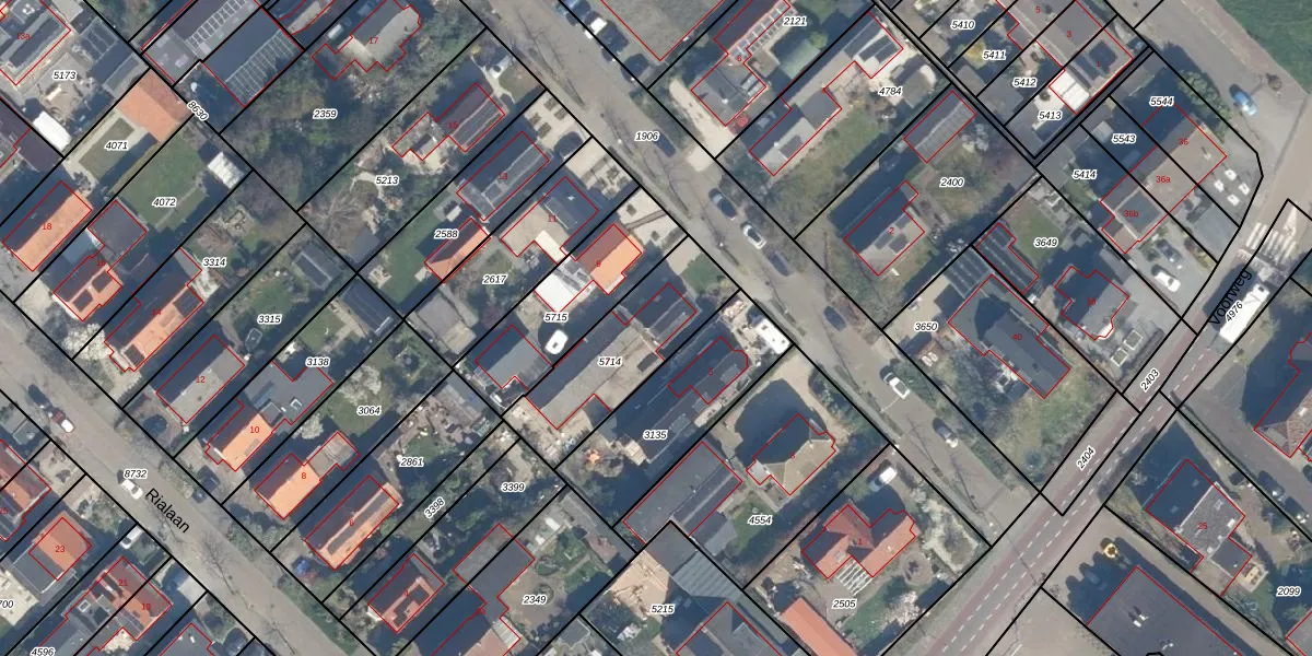 Gebruik de zoekbalk of klik op een perceel voor informatie over de adressen binnen dit perceel.