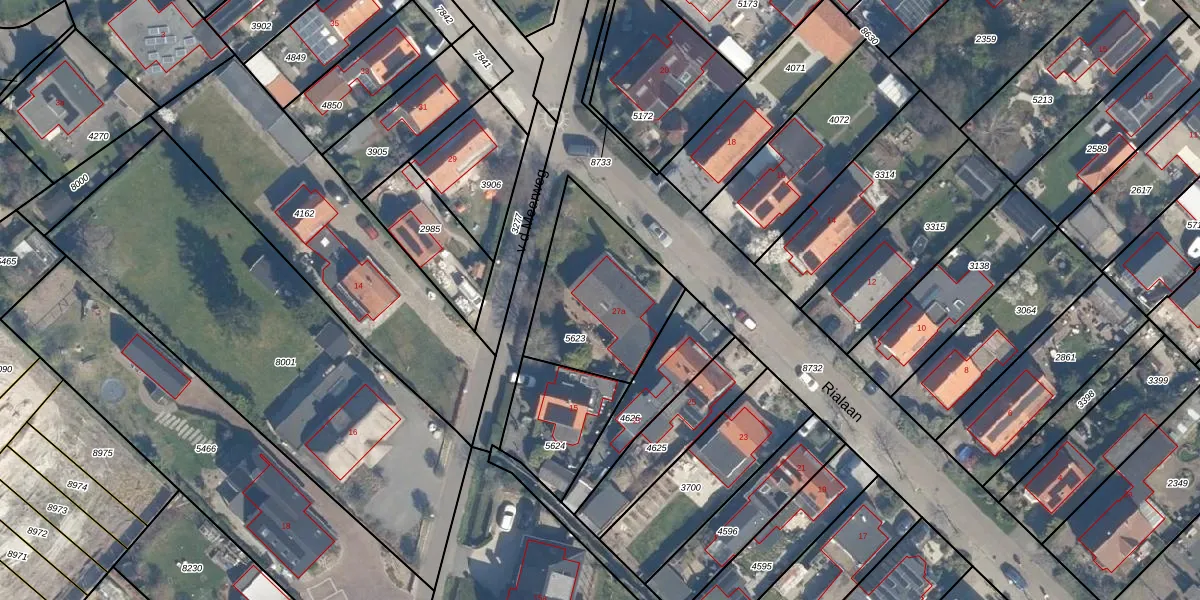 Het perceel waarop Rialaan 27-a staat heeft een oppervlakte van 535 m². Dit is een groot perceel. De perceeloppervlakte wordt geregistreerd door het Kadaster. Gedetailleerde informatie over de maten van dit perceel kunt u vinden in het rapport Kadastrale kaart met maatvoering van Rialaan 27-a.
